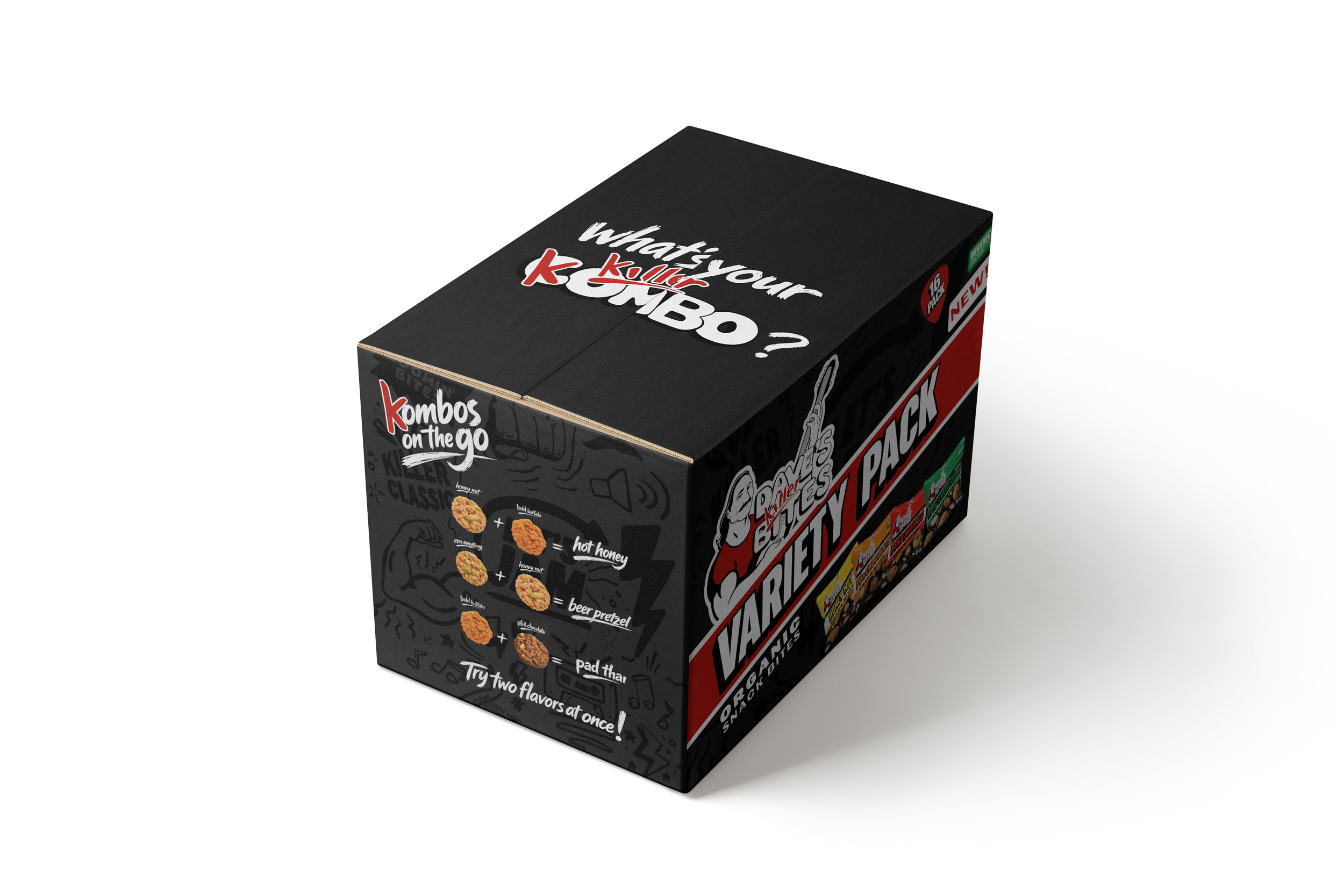 During our official team testing session of Dave’s Killer Snack Bites, things got a little crazy. Zoe accidentally ate the Chocolate Peanut Butter flavor at the same time as Bold Buffalo and realized the combo tasted just like pad thai. And just like that, the first Killer Kombo was born. From there, we all started mixing and matching flavors to see what wild new combos we could discover. We quickly became obsessed with all of the new flavors and knew that we had found our idea!